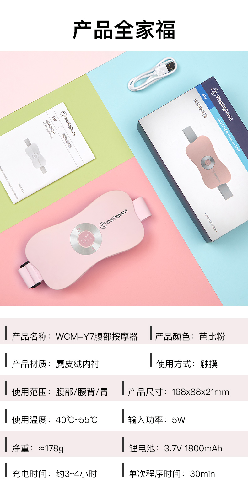 美国西屋-Y7 电加热腰部按摩器暖宫腰带保暖暖宫宝大姨妈肚子疼神器宫寒腰封带月痛经神器女暖宫护腰带
