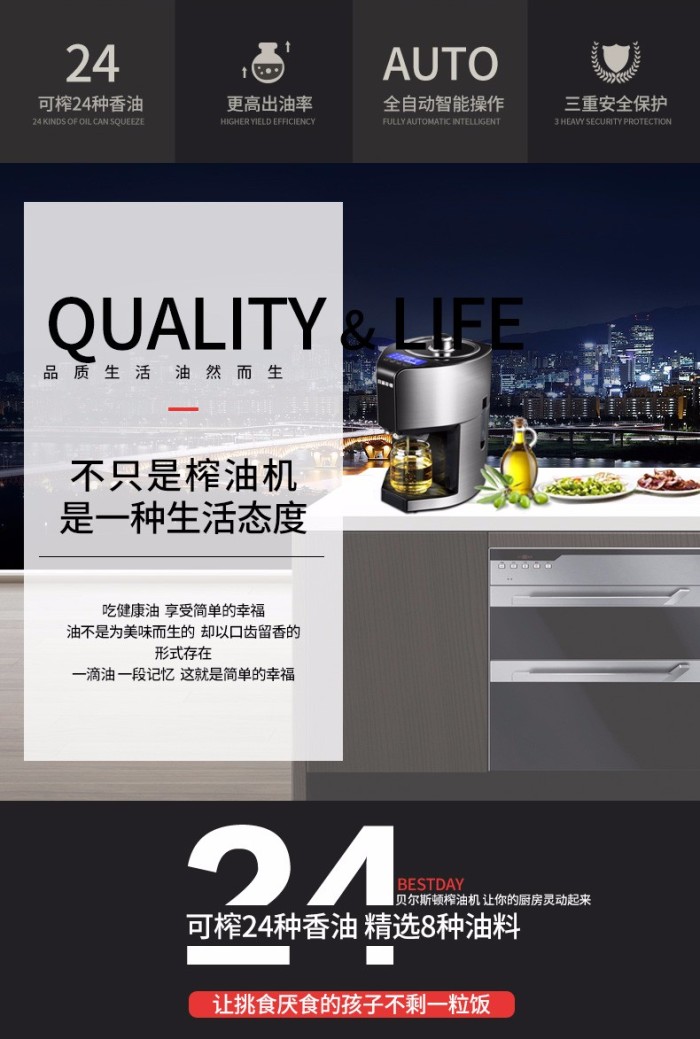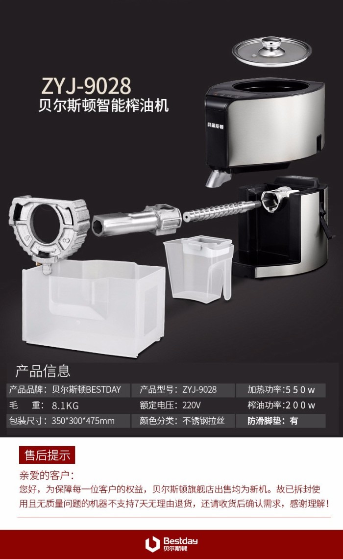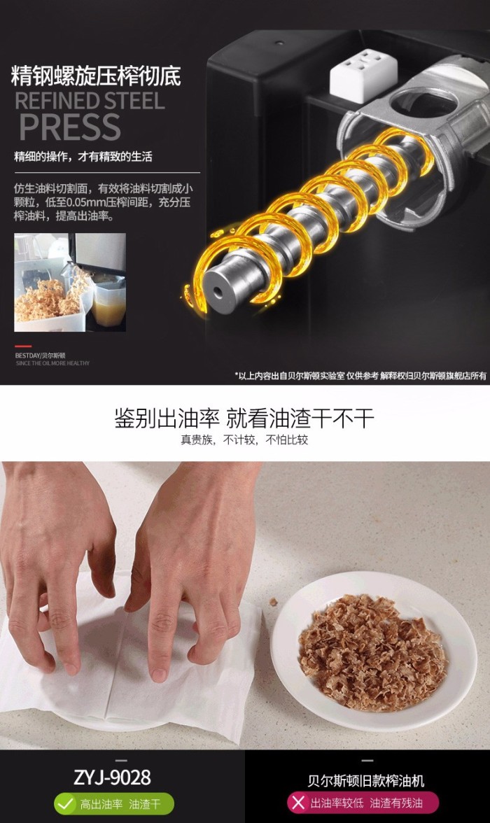 贝尔斯顿(Bestday) ZYJ-9028榨油机 家用全自动加热型植物油萃取机