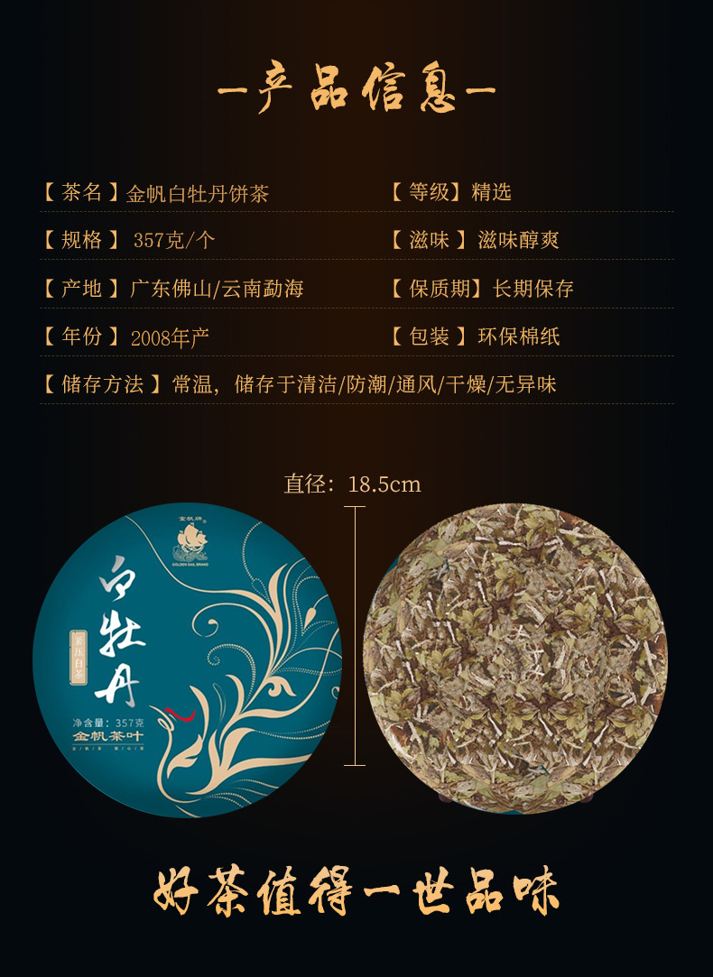 金帆白牡丹饼茶 白008